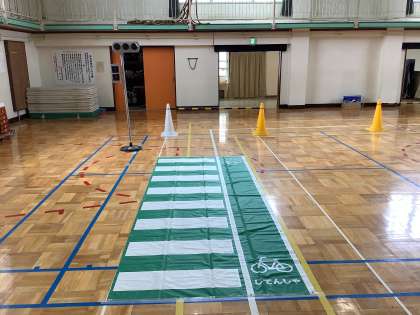 雨のため、まずは体育館で、交通事故の再現例DVDを見ました。