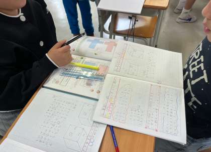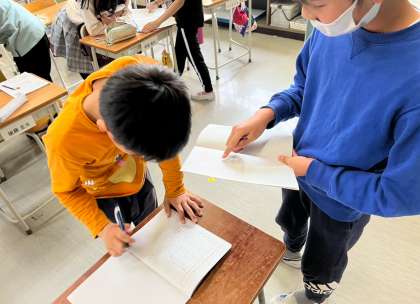 「ぱっと見で・・・」「面積で考えたら・・・」などなど、理由もつけながら考えを伝えあっていました。「考えを伝え合う」は学年目標の一つです。よく頑張っていました。