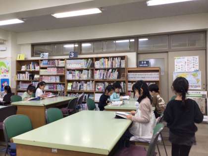 図書室で集中して読んでいる子どもたちに感心です。