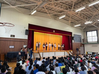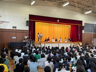 委員会の仕事内容やお願いを全校のみんなに伝えました。