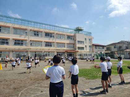 6年生が優しくシャトルランの走り方を教えてくれました。