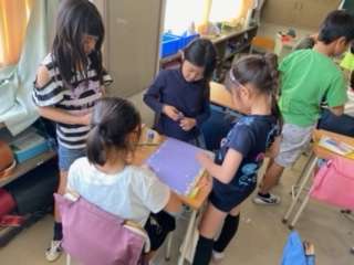 ?どうしたらクラスが楽しくなるか、それぞれの会社で相談してる場面です。どんなことをしてくれるのかたのしみです。