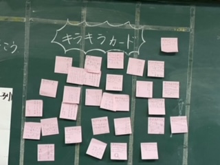道徳でクラスの良いところ、みんなで協力して嬉しかったり、楽しかったりしたことを書きました。