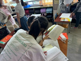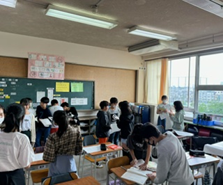 律と周也の2人の登場人物の視点で心情の変化を読み取り、みんなと交流しているところです。