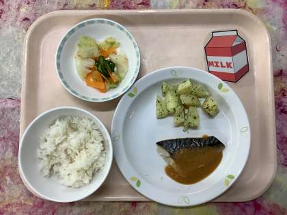 お魚の献立でなぜか人気がある「さばのピリ辛ソースかけ」。少し辛いので大丈夫かなという心配をよそにおかわりジャンケンをするクラスもあるほどです。