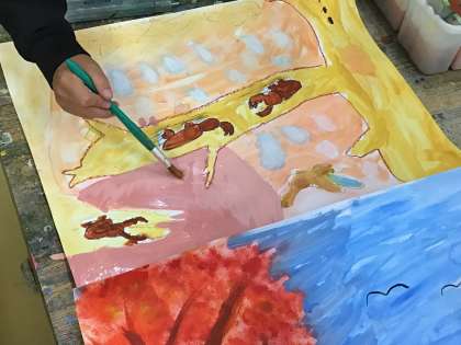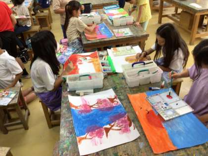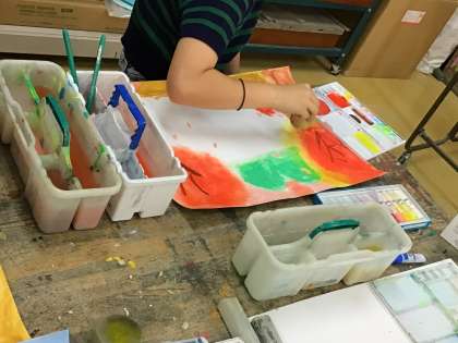 自分の好きな季節を、絵の具の塗り方や色、形など工夫して表現することを試みます。