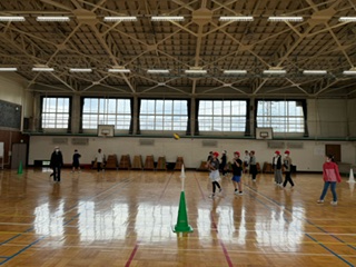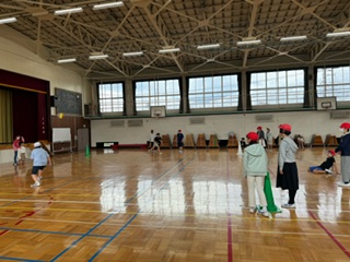 体育館でクラスレクを楽しんでいるところです!