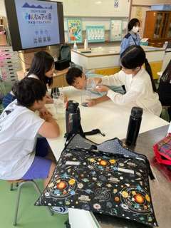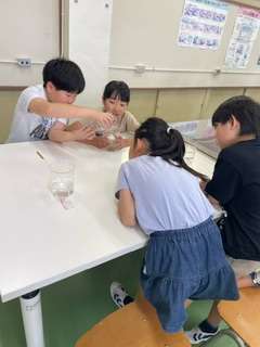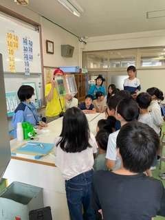 先日の水道キャラバンに続き、今日は下水道についての出前授業がありました。「自分達が使った水はその後どうなるのか?」実験やクイズ、様々な映像などから学び、下水道について詳しく知ることができました。