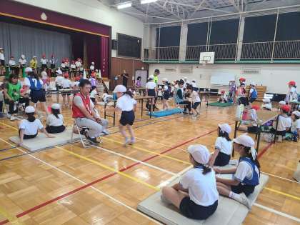 反復横飛びです。 敏捷性(アジリティ)を測定します。