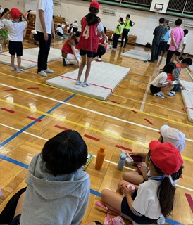 スポーツテストでは、1年生をリードしてあげながらグループで一生懸命取り組んでいました。