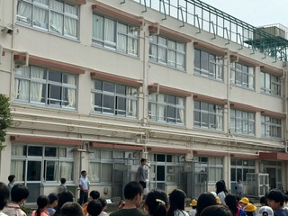 今回の全校朝会は、プール開き朝会です。