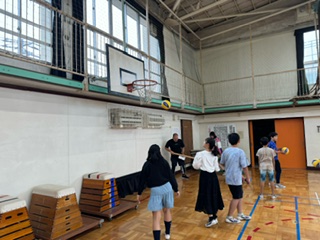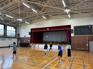 雨で校庭で遊ぶことができないため、6年生が割り当てられている時間に、体育館で遊ぶことができます。
