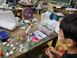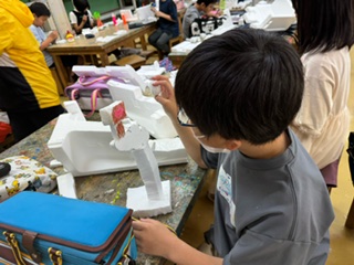 発泡スチロールを組み合わせて、バランスを取ったり、あえてアンバランスに組み合わせたり。