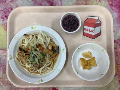 朝から熱中症警戒アラートが出ている今日は、冷たいものや辛いものが食べやすいのではないでしょうか。給食室では熱気に包まれながら、お出汁を取って、うどんや野菜を茹でてから冷し、具材を煮て、ポテトを揚げて、ゼリーを作ってとまだまだたくさんありますが、朝から回転釜も調理さんも汗だくでフル稼働していました。みなさんが美味しく食べてくれるよう、毎日一生懸命作っています。好きなものはもちろんですが、苦手なものや食べたことがないものもぜひチャレンジして食べてくださいね。