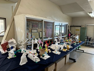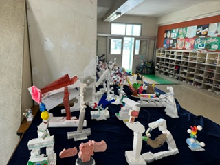 6年生が作った「バランスアンバランス」の作品を、BOP入口のところに展示しています。