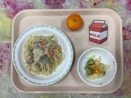 今日は暑い日にぴったり「冷凍みかん」です。なぜか、冷凍みかんの日は寒くなることが多く、配膳してくれた給食室の人にも言われましたが今日は大丈夫でホッとしています。水分補給をしっかりして熱中症予防を忘れずにしましょう。