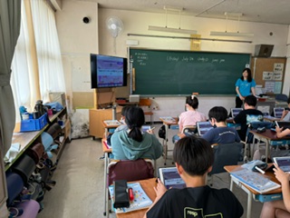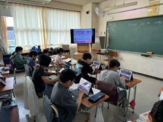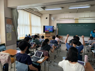 1学期最後の外国語の時間は、タブレットを使って四択早押しクイズにチャレンジしました!
