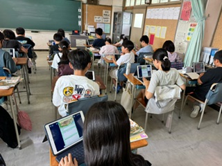武士の館の様子をじっくりと見て、気付いたことをロイロノートにまとめています。