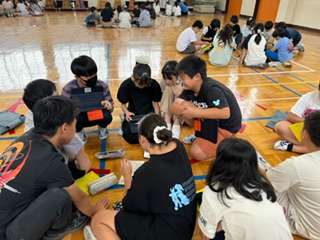 とても和やかな雰囲気の中、舟形交流への想いを伝える6年生と、一生懸命聞く5年生!