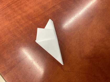 説明をしっかり聞いて、黒板の見本の拡大折り紙を見て、