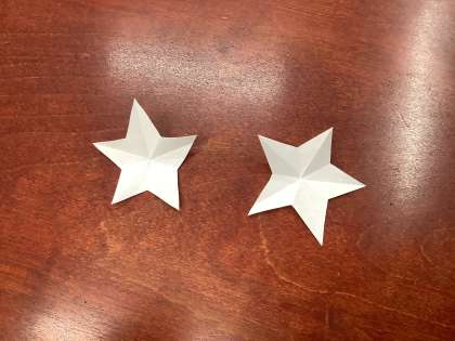 ハサミで切ると・・・きれいな星型(朝顔型)が出来上がりました!