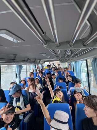 スクールバスに乗り込み、さあ、舟形小学校に向かいます。