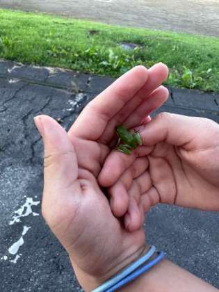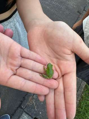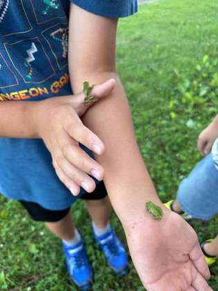なかよしタイムでカエルを見つけて大はしゃぎ。