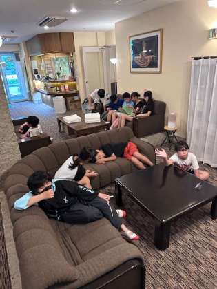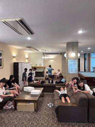 部屋が細かく分かれているからでしょうか?みんなロビーに集まってわちゃわちゃしています(笑)