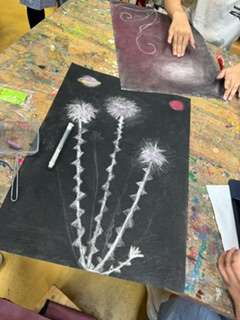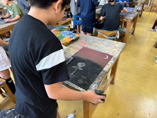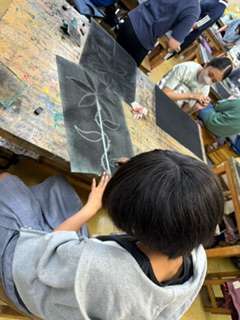 図工では、「私の心の中の花」をテーマに、一人一人の中にある花をイメージして描いています。