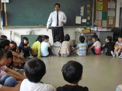 6月7日 2・3年生が、ALTの先生と一緒に英語活動を行いました。一緒に英語を使いながら、会話の練習やゲームなどを行います。