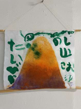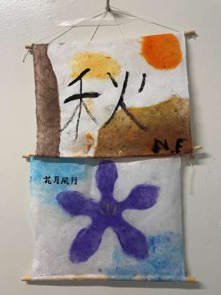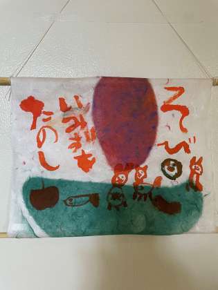 この作品は、夏休みPTA紙漉き同好会の皆さんが親子で紙漉き体験をした時の作品です。