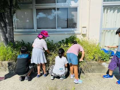 夏休みに伸びていた花壇の雑草、有志の子達で抜きました。ありがとう!