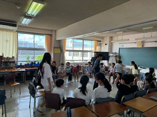 低学年の子にも伝わるように、丁寧に説明したり一緒になって遊んであげたりしていました。