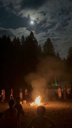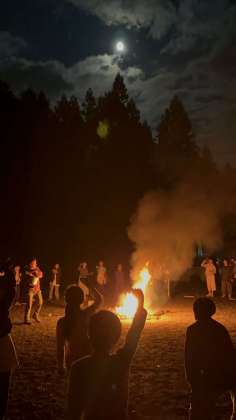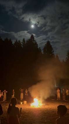 美しい満月が山崎小のキャンプファイアを見守っています。