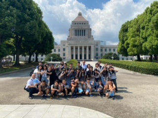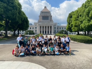 中の様子はお見せできませんが、国会議事堂の敷地内にある47都道府県の木を順番に見て、正面で集合写真を撮りました。