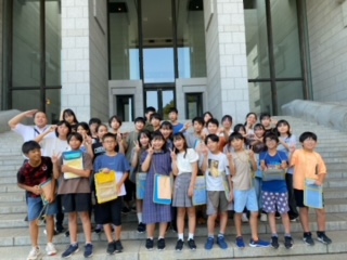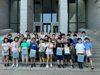 中の様子はお見せすることができませんが、記念に正面で集合写真を撮りました。