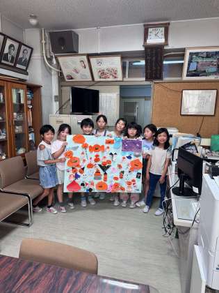 と2-1の子どもたちが見せに来てくれたのは、模造紙2枚分いっぱいに貼ったハロウィンの折り紙。
