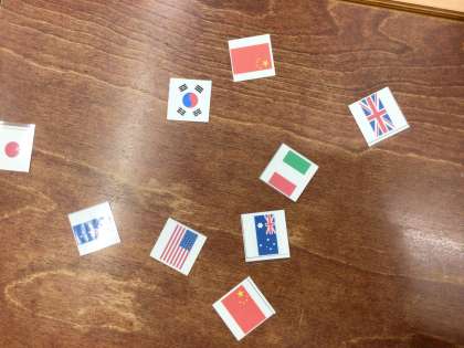 今週の外国語活動では、国名の勉強をしたあと、国旗かるたをして楽しみました。