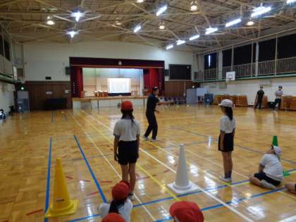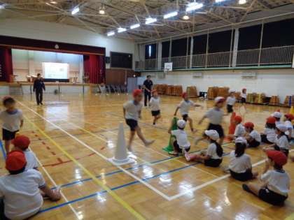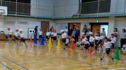 体育館でしたが、子どもたちは楽しく体を動かし、気持ちよさそうに走っていました。