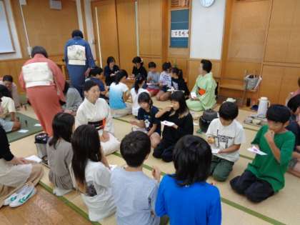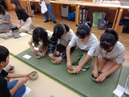 毎年行っている茶道教室は、も山崎小学校でもう10年以上実施していると教えていただきました。