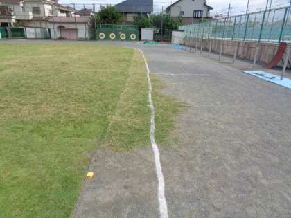 昨日は、トラック部分のはみ出した芝生部分をきれいに刈り取りました。
