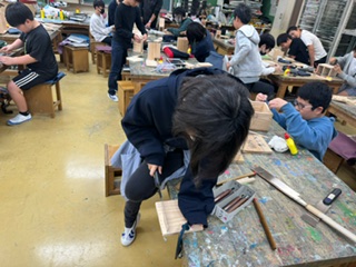図工では、「わたしはデザイナー!12才の力で」というタイトルの、木工作に取り組んでいます。