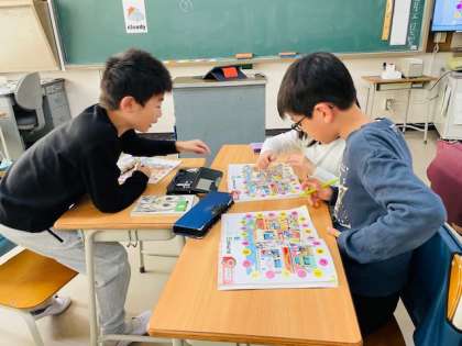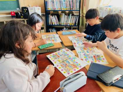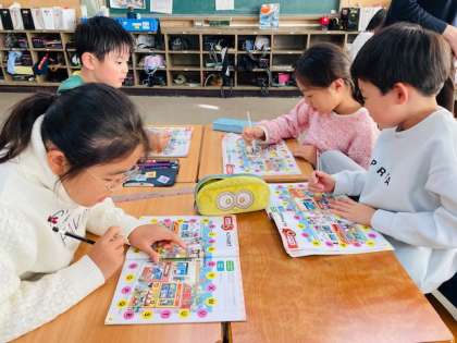 外国語活動で、班ごとにA〜Zまでアルファベットを探しました。