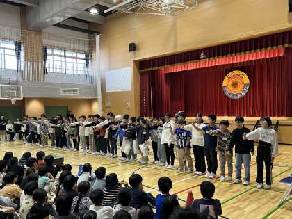山崎小学校の校歌が代沢小学校で美しく響きました。