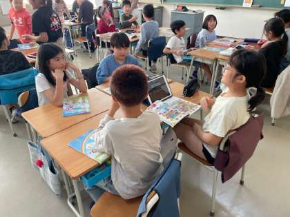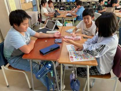 アルファベットを班のメンバーで輪番に何秒で言えるか!のゲーム。