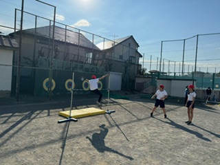 体育では、走り高跳びと走り幅跳びに取り組んでいます。