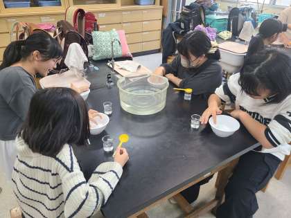 水を丸くするのにコツが入りますが、最後の最後まで粘って実験に取り組んでいました。
