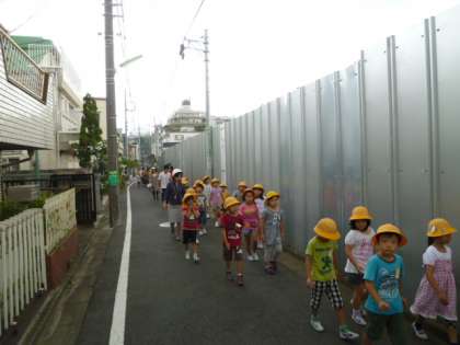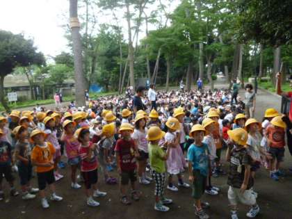 また、今回は火災発生により第2次避難場所への避難が必要であることも想定して、若林公園へ全員が避難しました。「お・か・し・も」の約束を守って、落ち着いて行動することができました。