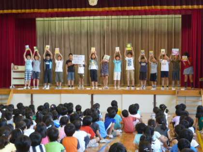 本の紹介や図書室を使うときの約束を、クイズ形式で紹介したり、伝えたりしました。また、新しい本の紹介・課題図書の紹介も行いました。
