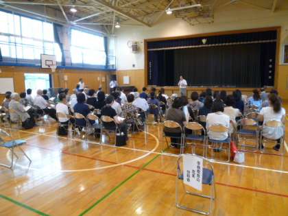 今回は、若林小学校の5校時の授業を参観させていただき、その後体育館に集まり協議会を開きました。